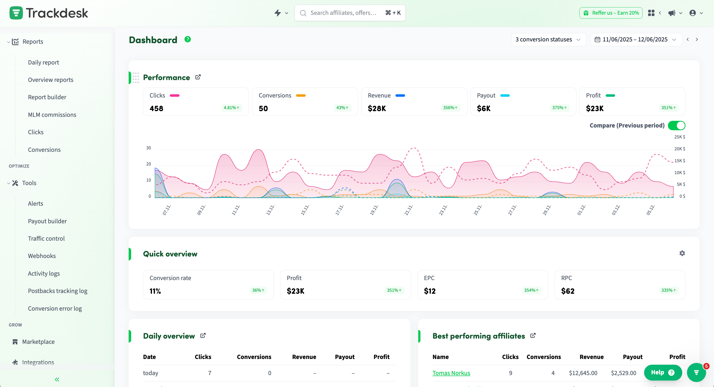 With real-time data, you stay agile, proactive, and always in control of your affiliate program’s performance.