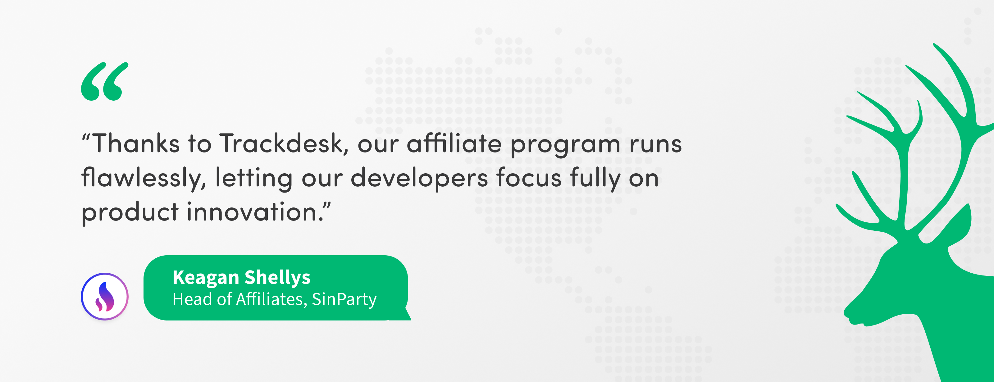 ✔ All-in-One Affiliate Infrastructure: From onboarding to payout, Trackdesk powers every stage of SinParty’s program in one clean dashboard.